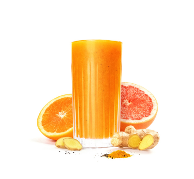 Narancs, grapefruit és alma adják az alapot – természetes C-vitamin-forrásként. A gyömbér, a kurkuma és a fekete bors funkcionális, melegítő hatást ad.