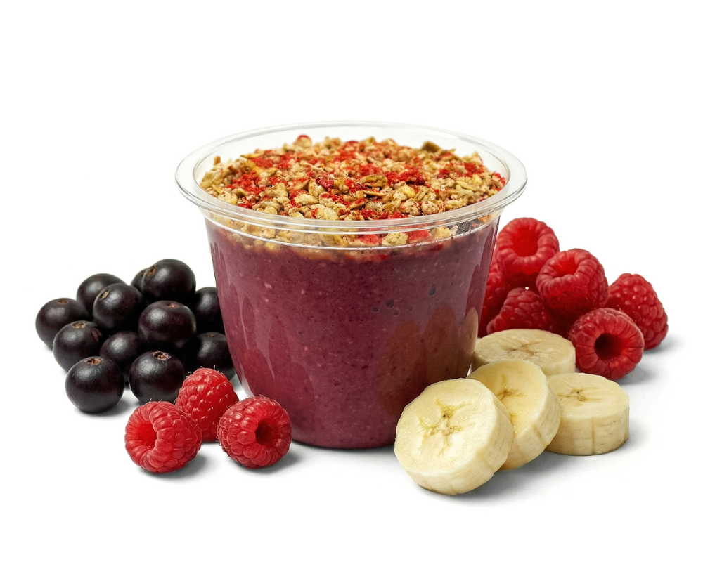 Acai és málna enyhén savanykás íze igazi frissítő. Könnyű, mégis ütős választás a nap bármely részében.